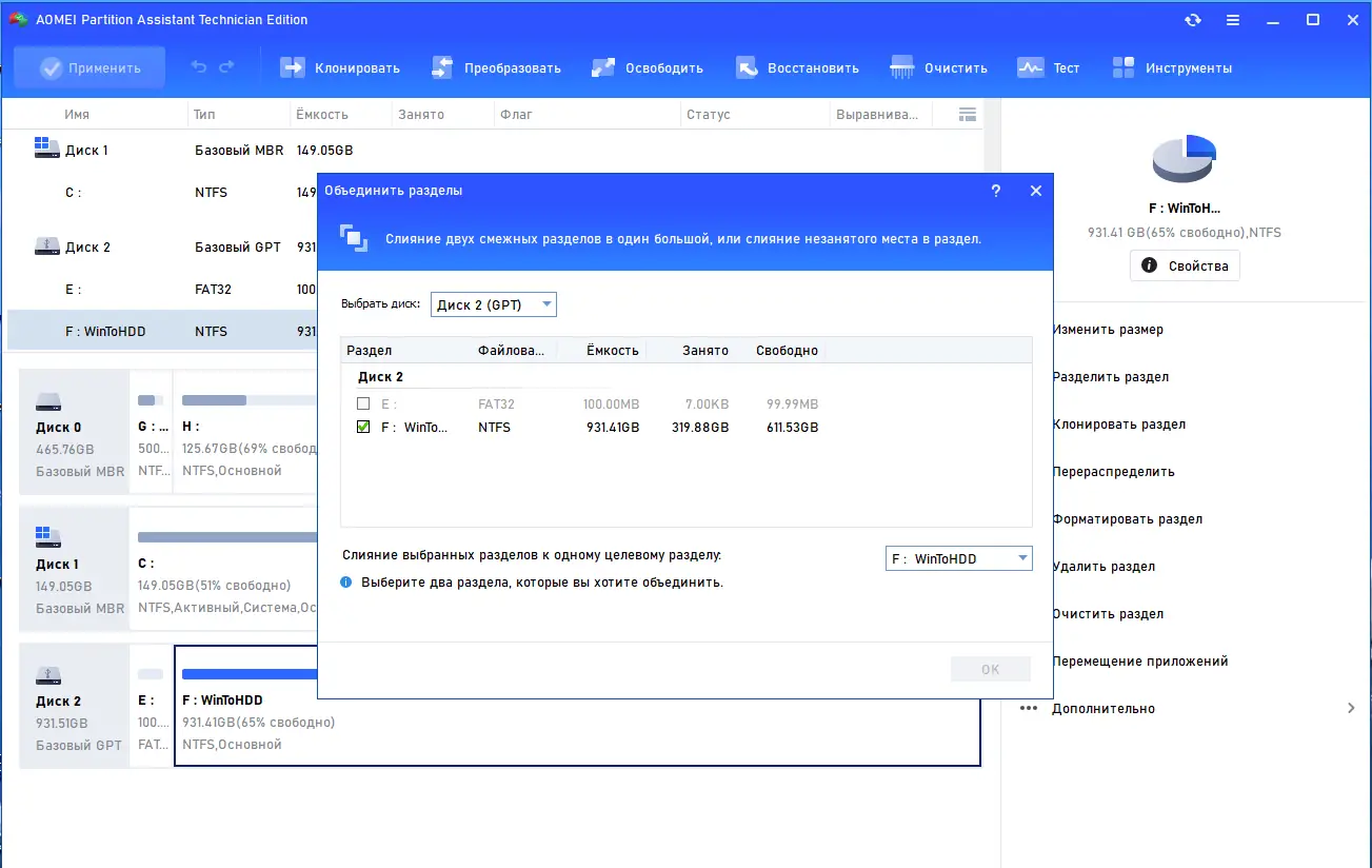 AOMEI Partition Assistant сочетает в себе мощные функции и простоту использования, что делает её одним из лидеров в категории системных утилит. Она поддерживает широкий спектр операций, включая клонирование дисков, создание резервных копий и работу с динамическими томами. Версия RePack включает дополнительные компоненты, такие как AOMEI Recover Windows Data и инструменты для создания загрузочных WinPE-дисков, что увеличивает функциональность. При этом программа не требует активации и поставляется с мультиязычным интерфейсом, включая русскую локализацию.