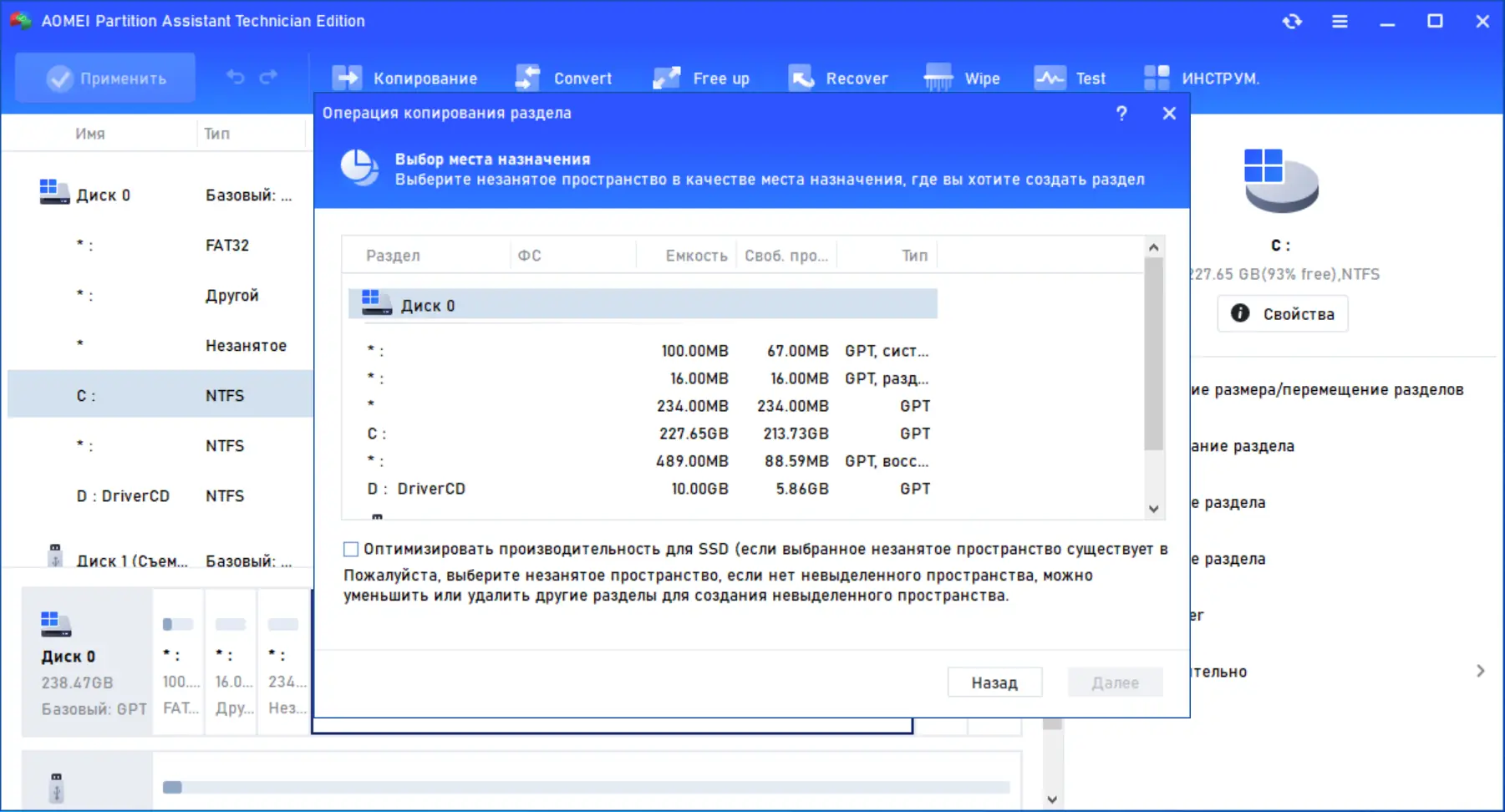 - Поддержка современных технологий, таких как SSD-оптимизация и клонирование дисков