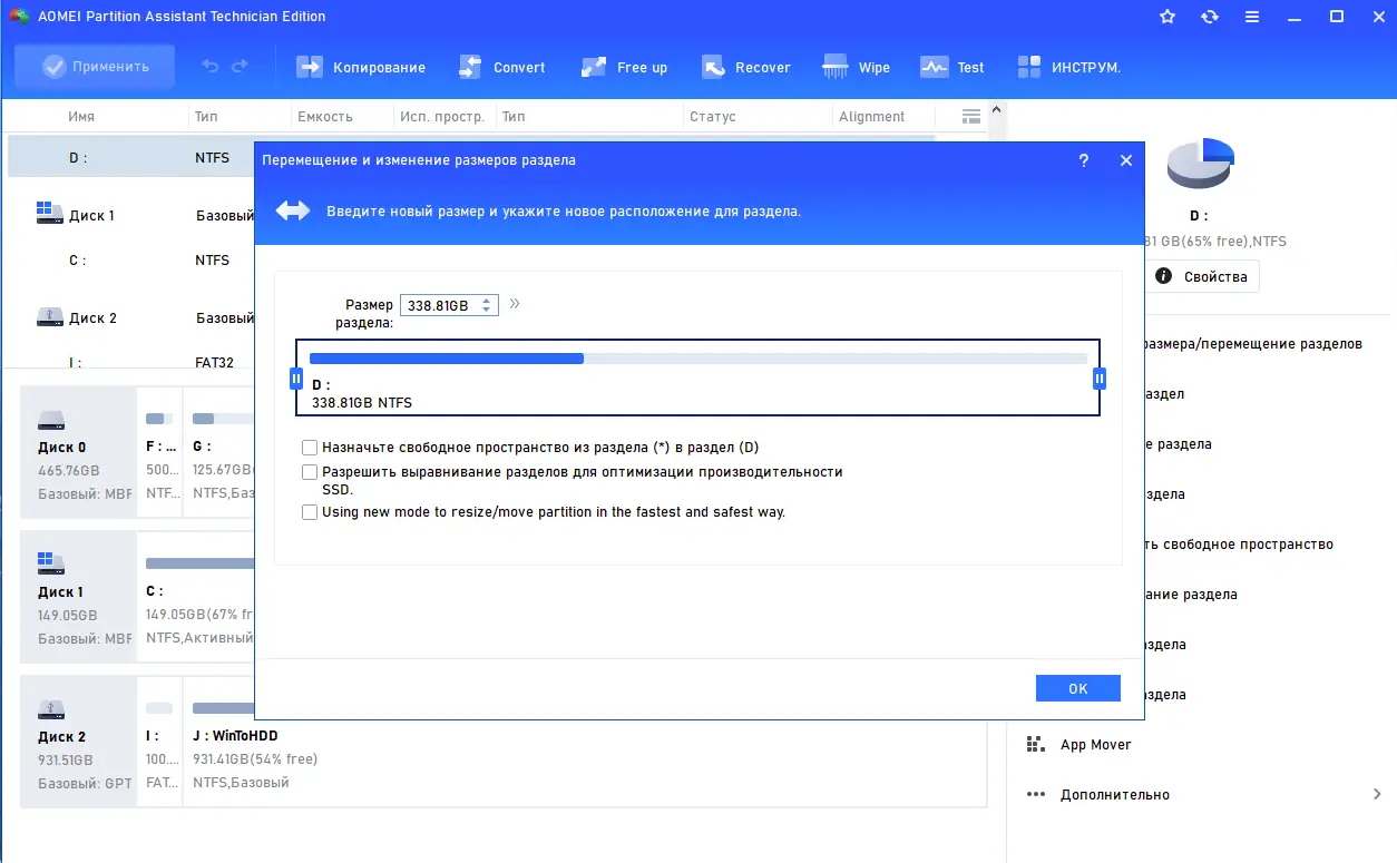 Работа с программой начинается с запуска интерфейса, где отображается текущая конфигурация дисков и разделов. Пользователь может выбрать нужный раздел и применить одну из доступных операций — изменение размера, копирование, форматирование или удаление. Для выполнения сложных задач, таких как миграция системы на SSD или восстановление раздела, предусмотрены пошаговые мастеры, которые направляют пользователя на каждом этапе. Все изменения можно предварительно просмотреть в режиме предварительного просмотра, что исключает случайные ошибки.
