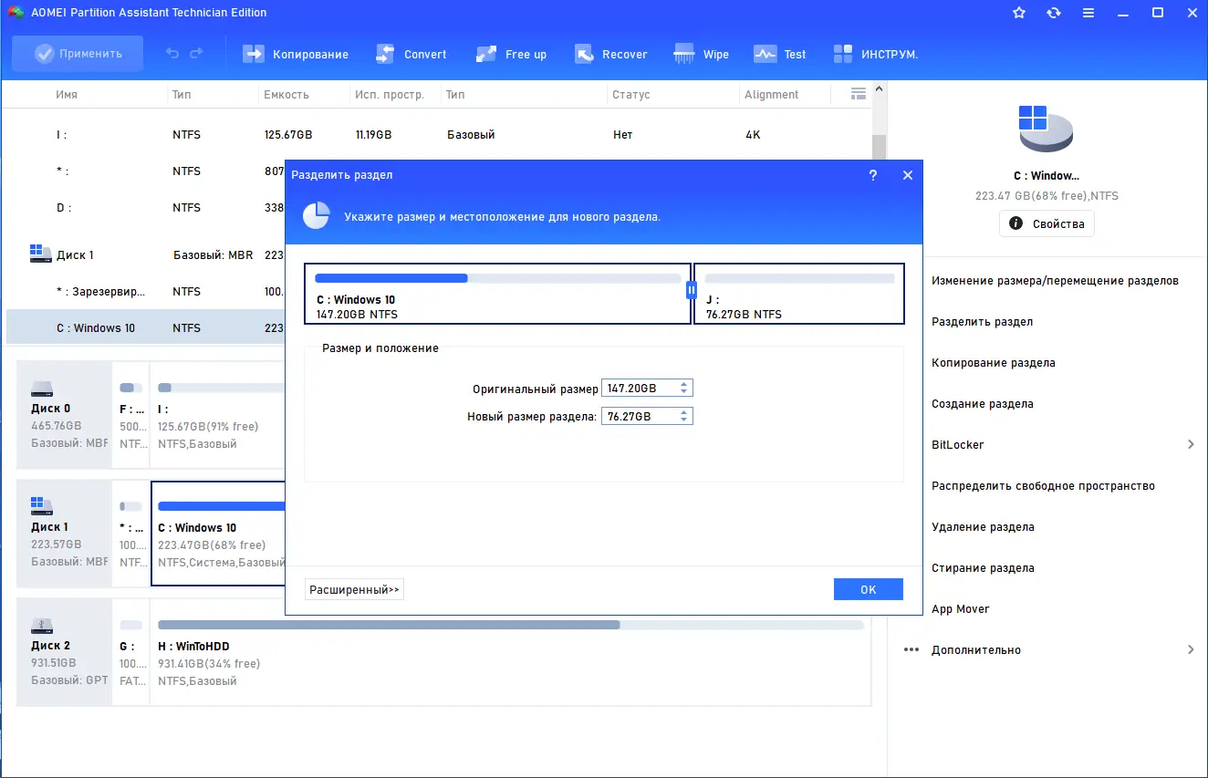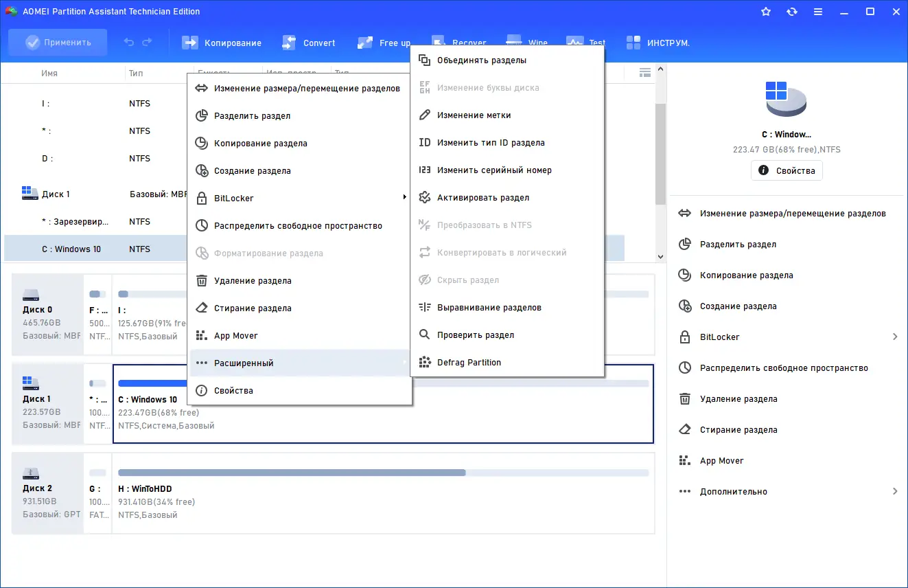 Использование AOMEI Partition Assistant не требует глубоких технических знаний. После запуска приложения отображается графическое представление всех подключённых дисков и их разделов. Пользователь может визуально изменять размеры разделов, перетаскивая границы, или вызывать контекстное меню для выполнения операций, таких как форматирование, копирование или удаление. Перед применением изменений программа предоставляет предварительный просмотр, что исключает случайные ошибки. Все действия выполняются в безопасном режиме, а критические операции могут быть запланированы на следующую перезагрузку.