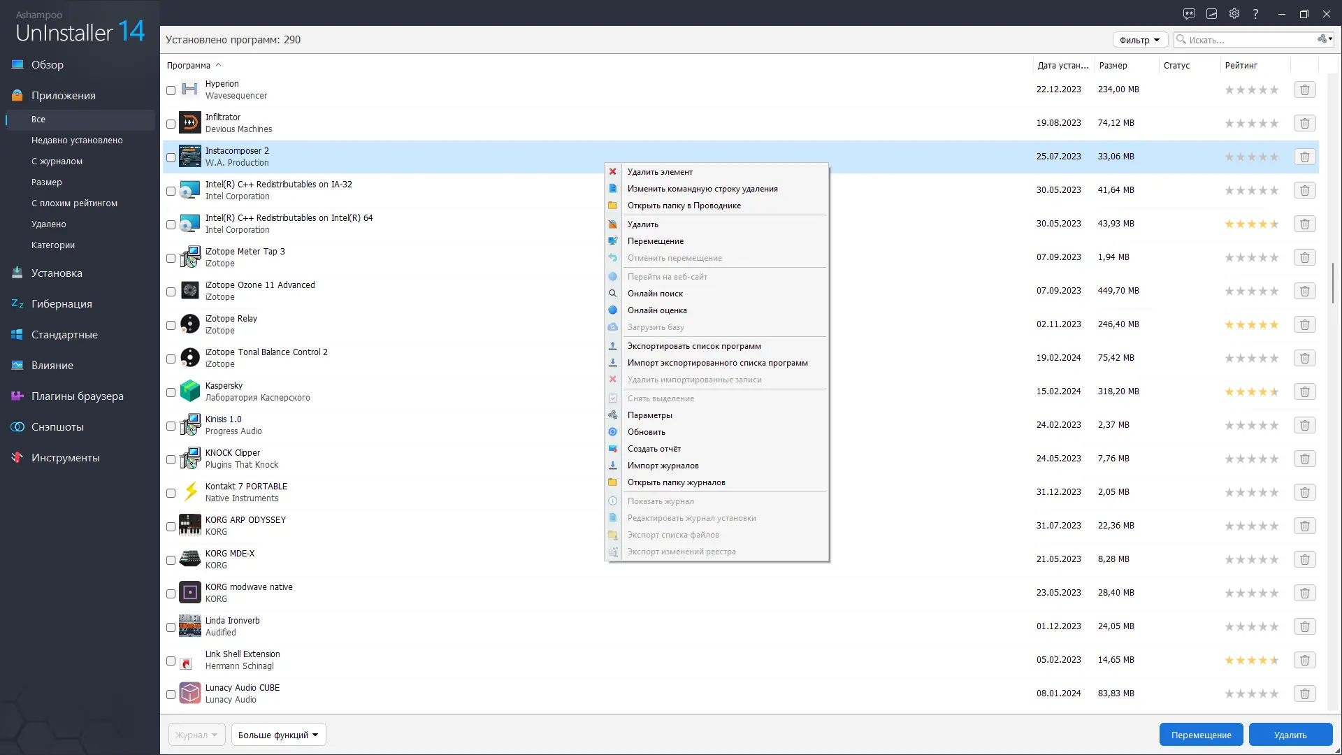 Ashampoo UnInstaller — это мощное решение для полного контроля над установленным программным обеспечением и системными процессами. Программа обеспечивает чистое удаление приложений без остатков в реестре и файлах, а также позволяет мгновенно переносить программы между дисками. С её помощью можно эффективно оптимизировать пространство на жёстком диске, ускорить загрузку системы и устранить следы нежелательного ПО.