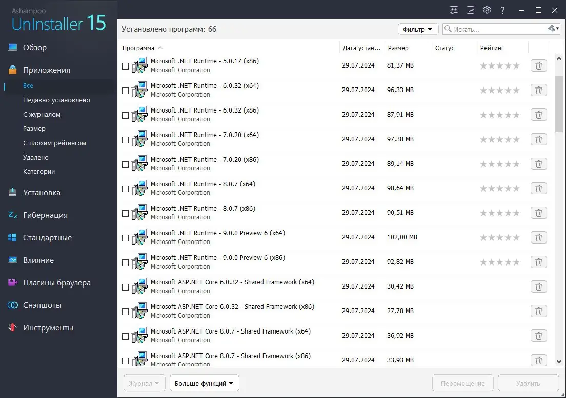 Ashampoo UnInstaller 15 — это продвинутая утилита для полного и безопасного удаления программ, сопровождающегося глубокой очисткой системы. Программа эффективно отслеживает процессы установки в реальном времени, фиксирует все изменения и позволяет в любой момент полностью отменить инсталляцию, включая остаточные файлы и записи реестра. Обновлённая версия демонстрирует в разы более высокую скорость работы, минимальное потребление ресурсов и расширенные возможности по защите конфиденциальности. Особенно выделяется новый модуль поиска следов активности, а также функция переноса приложений между дисками без переустановки.