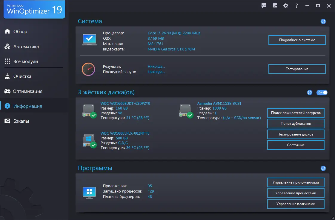 Ashampoo WinOptimizer представляет собой многофункциональный инструмент для комплексной оптимизации системы. Программа включает в себя модули для очистки реестра, дефрагментации жёстких дисков, анализа загрузки Windows, а также обеспечивает защиту конфиденциальных данных. В состав входят инструменты для безопасного удаления файлов, шифрования, поиска дубликатов и управления фоновыми процессами. Интерфейс программы переработан с учётом современных требований, что обеспечивает быстрый доступ к ключевым функциям.