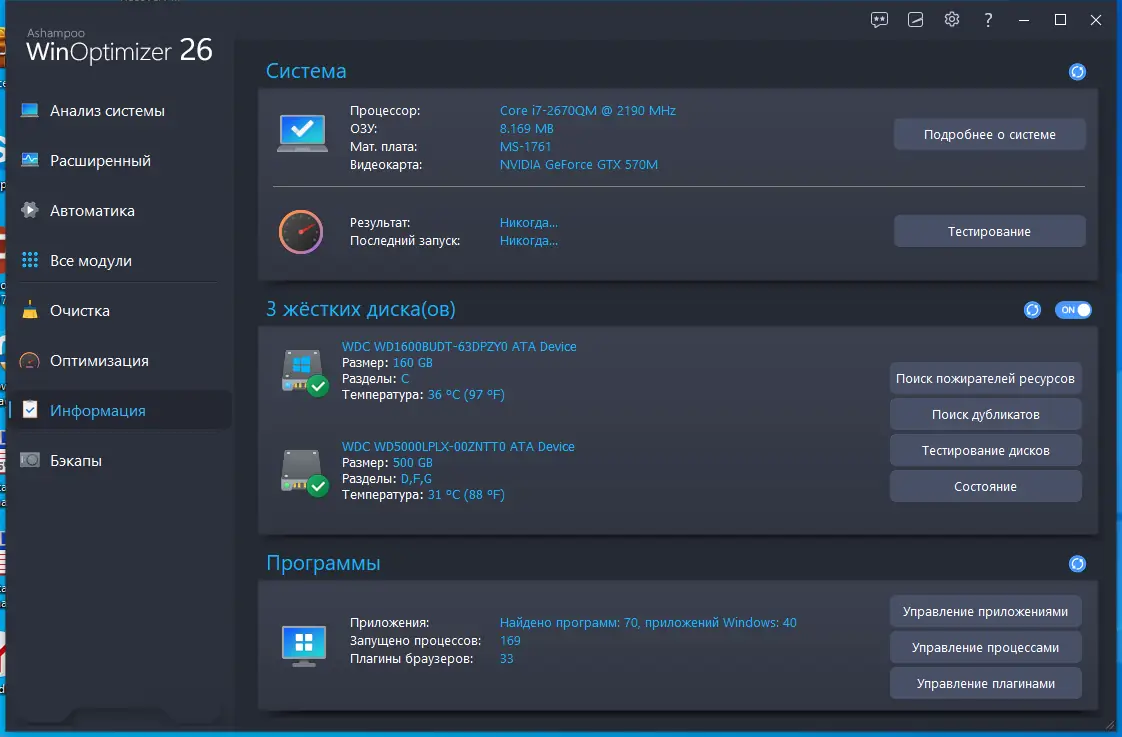 Ashampoo WinOptimizer демонстрирует высокую эффективность при оптимизации производительности и управлении ресурсами системы. Программа регулярно обновляется, учитывая изменения в новых версиях Windows, и поддерживает современные аппаратные конфигурации. Её архитектура оптимизирована под многоядерные процессоры, что обеспечивает быструю работу даже при сканировании больших объёмов данных. Визуальный интерфейс адаптирован под высокие разрешения экранов, поддерживает масштабирование и привязку окон. Улучшенные модули очистки работают на 75% быстрее по сравнению с предыдущими версиями, а автоматические функции позволяют поддерживать систему в идеальном состоянии без постоянного вмешательства пользователя.