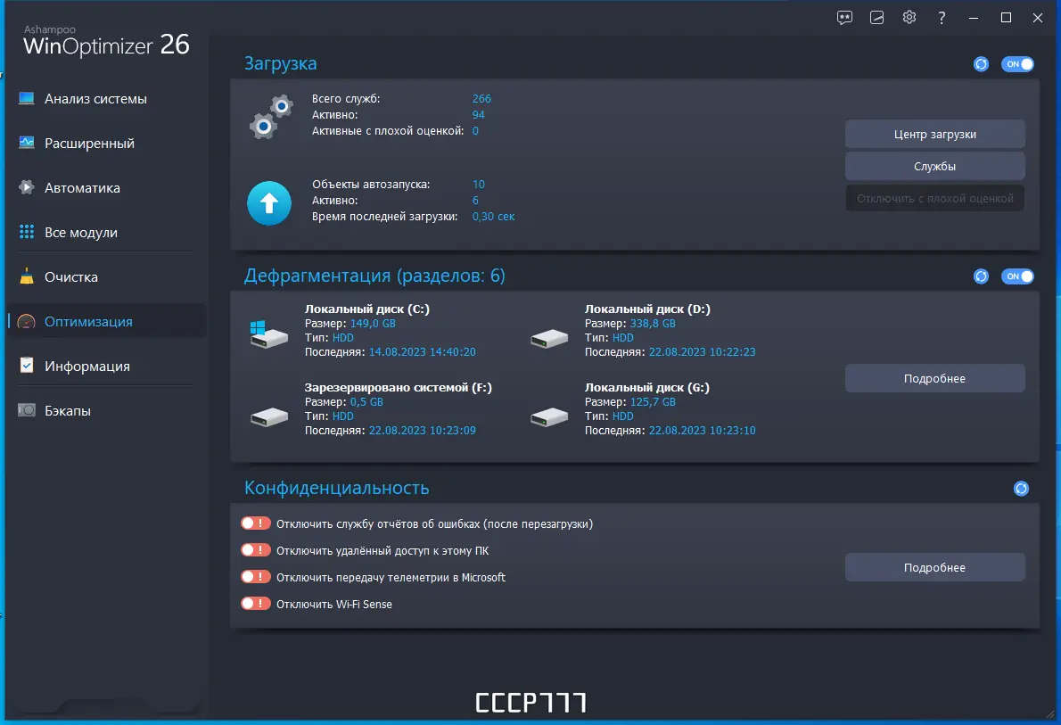 Ashampoo WinOptimizer представляет собой многофункциональное решение, предназначенное для комплексного обслуживания операционной системы. Программа позволяет проводить очистку дисков и реестра, управлять автозагрузкой, настраивать системные параметры и защищать личные данные. Её модульная структура даёт возможность точно настраивать каждый аспект работы системы, включая интернет-соединение, запуск приложений и фоновые процессы.