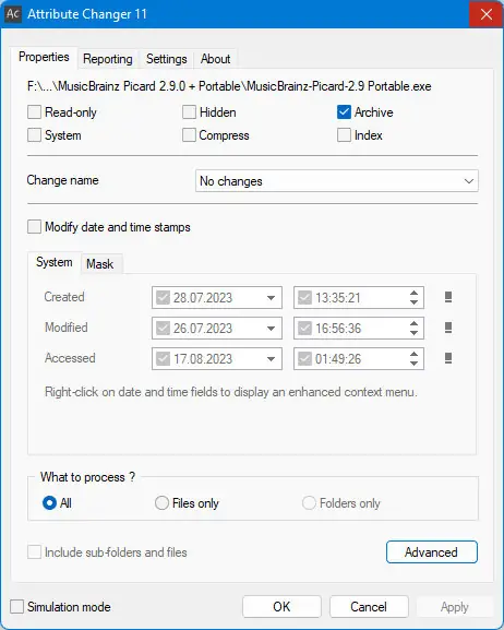 Attribute Changer — это компактная системная утилита для изменения атрибутов файлов и папок в операционной системе Windows. Программа интегрируется в контекстное меню проводника, позволяя быстро настраивать параметры без необходимости запуска дополнительных окон. Поддерживается пакетная обработка, синхронизация дат и работа с метаданными, что делает инструмент незаменимым при организации файловой структуры.