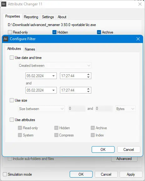 Attribute Changer — это компактная системная утилита для управления атрибутами файлов и папок в операционной системе Windows. Программа позволяет изменять ключевые свойства элементов, такие как доступность для чтения, скрытость, архивный статус и системная принадлежность. Также поддерживаются функции корректировки временных меток и пакетной обработки, что делает её полезным инструментом для точной настройки файловой системы.