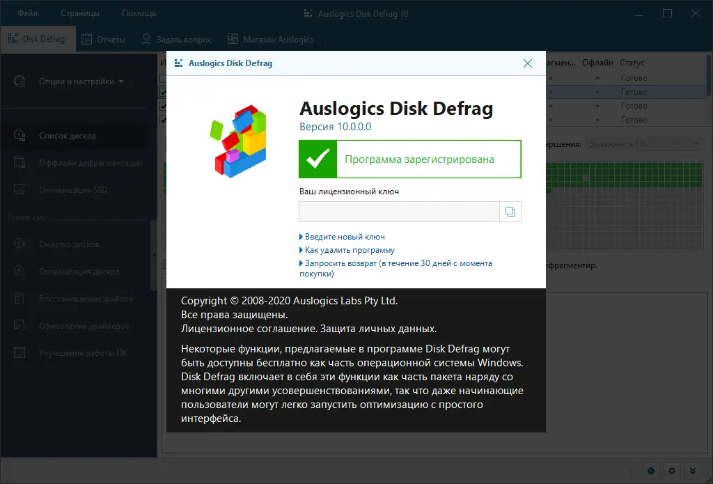 - Высокая скорость обработки благодаря продвинутым алгоритмам дефрагментации.