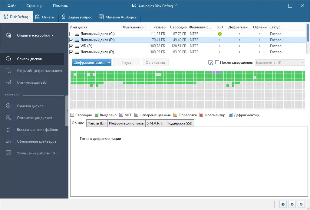 AusLogics Disk Defrag — это высокопроизводительный дефрагментатор для оптимизации жёстких дисков с поддержкой FAT16/32 и NTFS. Программа ускоряет работу системы, упорядочивает файлы и улучшает доступ к данным. Подходит как для новичков, так и для опытных пользователей, заботящихся о производительности ПК.