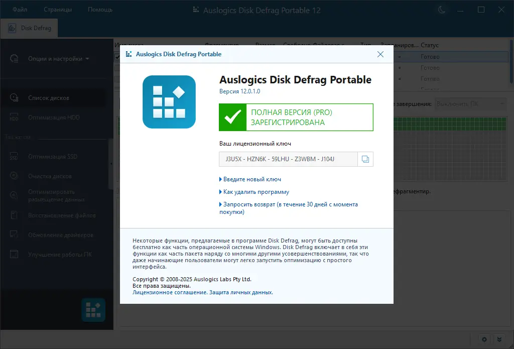 Auslogics Disk Defrag — это высокопроизводительный инструмент для дефрагментации и оптимизации жёстких дисков, совместимый с файловыми системами FAT 16/32 и NTFS. Программа ускоряет доступ к данным, упорядочивает разрозненные файлы и повышает общую отзывчивость системы. Благодаря эффективным алгоритмам, она подходит как для традиционных HDD, так и для современных SSD.