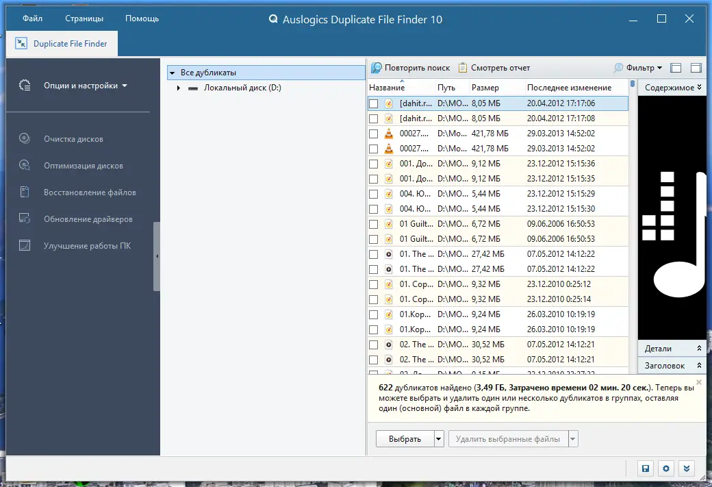 Программа Auslogics Duplicate File Finder предназначена для поиска и удаления дублирующихся файлов на жёстком диске, освобождая значительный объём дискового пространства. Она быстро анализирует содержимое системы, сравнивая файлы по данным, а не только по имени, что повышает точность обнаружения дубликатов. Утилита поддерживает все типы файлов и идеально подходит для оптимизации хранения данных.