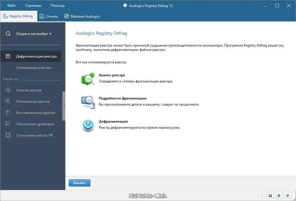 Auslogics Registry Defrag — это утилита для дефрагментации и оптимизации системного реестра Windows, направленная на повышение общей производительности компьютера. Программа анализирует структуру реестра, устраняет фрагментацию, исправляет ошибки и ускоряет доступ к ключевым системным данным. Регулярное использование инструмента способствует более стабильной и быстрой работе операционной системы.
