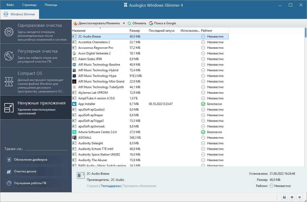 Программа помогает сделать систему более компактной без потери функциональности, ориентируясь на реальное использование ресурсов.