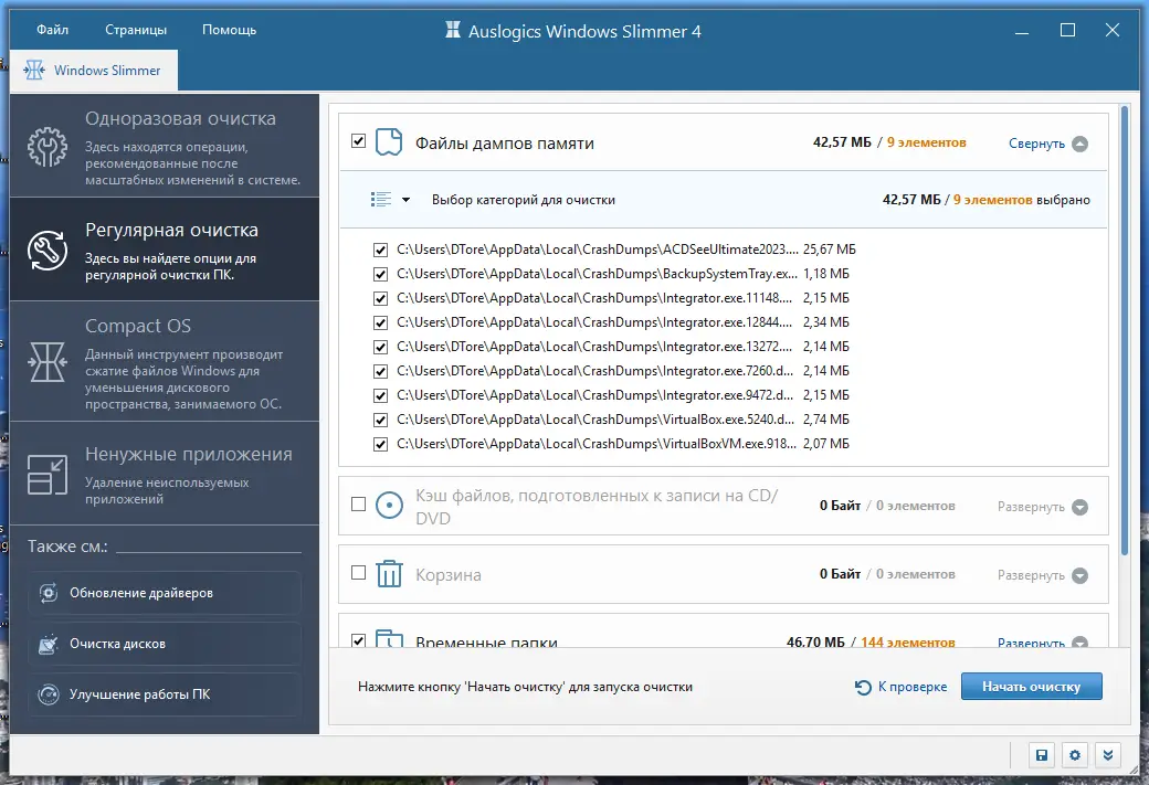 Программа помогает сделать Windows более компактной и отзывчивой без необходимости переустановки системы.