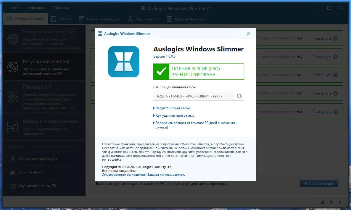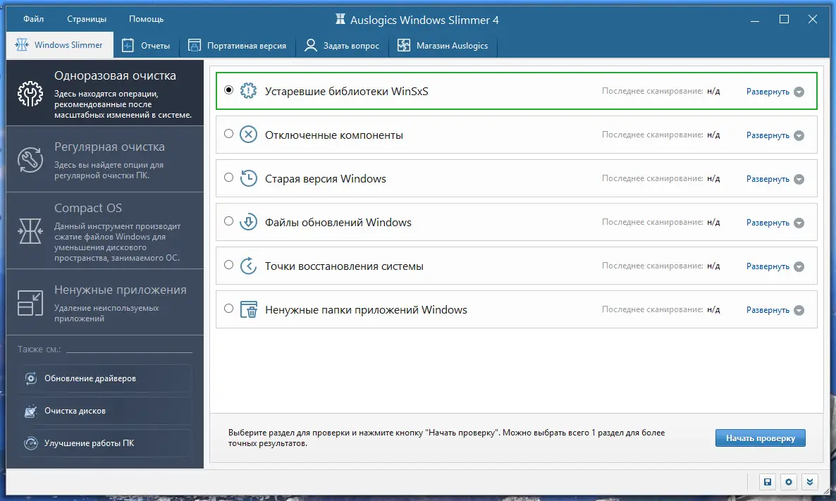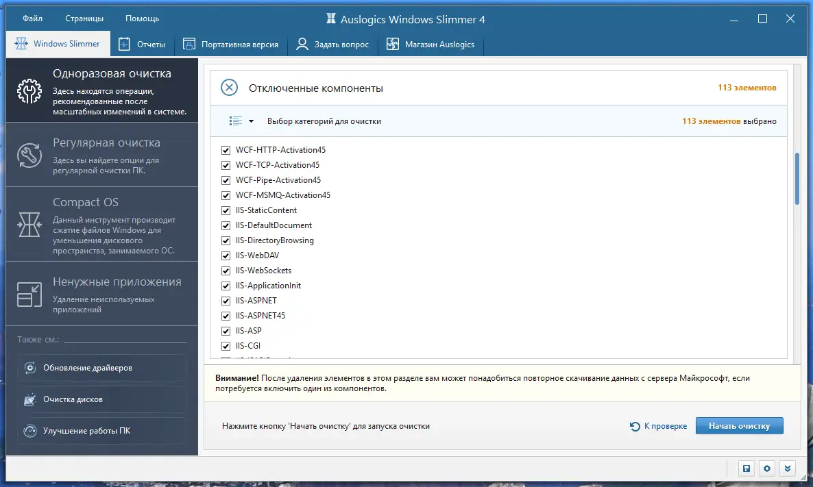 Auslogics Windows Slimmer — это инструмент для тонкой настройки и сокращения размера операционной системы Windows. Программа помогает удалять ненужные компоненты, освобождать дисковое пространство и повышать общую производительность системы. Подходит для пользователей, стремящихся к чистоте и эффективности в работе компьютера.