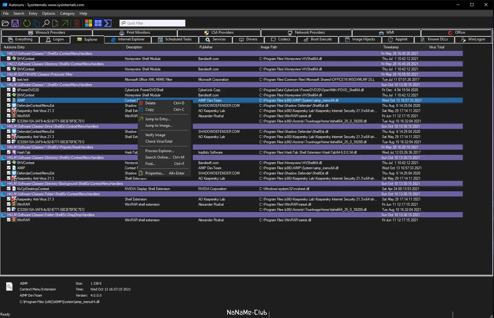 - Поддерживает анализ DLL-библиотек, драйверов и кодеков, запускаемых автоматически.
