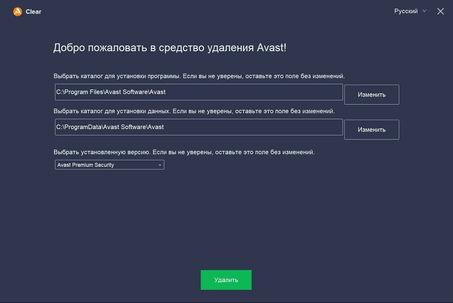 - Удаляет все версии антивируса Avast, включая устаревшие и обновлённые сборки