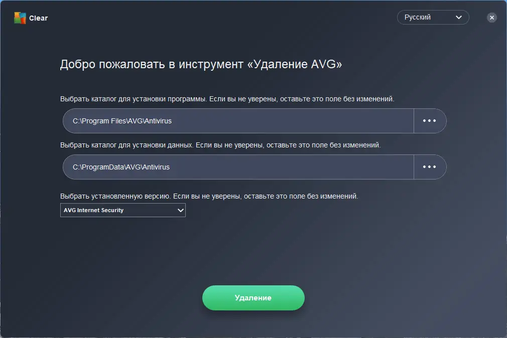 Использование утилиты простое и интуитивно понятное. После запуска исполняемого файла откроется интерфейс, в котором необходимо выбрать продукт AVG, подлежащий удалению. Затем следует подтвердить действие, нажав кнопку «Удалить», после чего начнётся процесс сканирования и очистки всех связанных компонентов. По завершении процедуры система предложит выполнить перезагрузку для финального завершения деинсталляции.