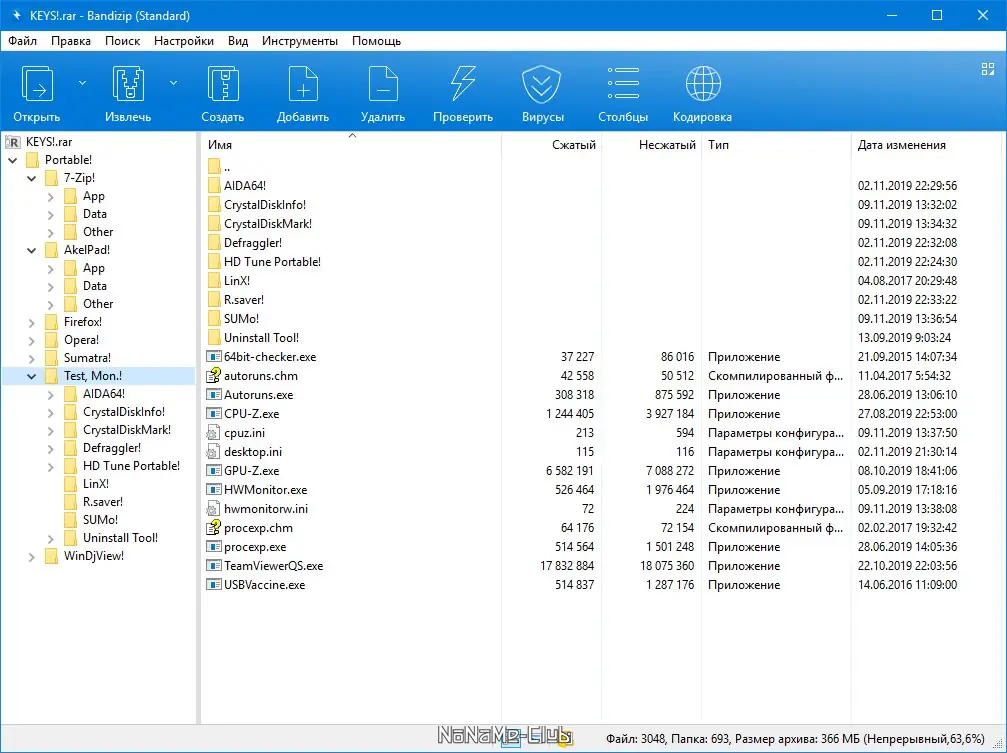 Bandizip обеспечивает стабильную работу даже с архивами огромного размера и файлами, превышающими лимит в 4 ГБ.