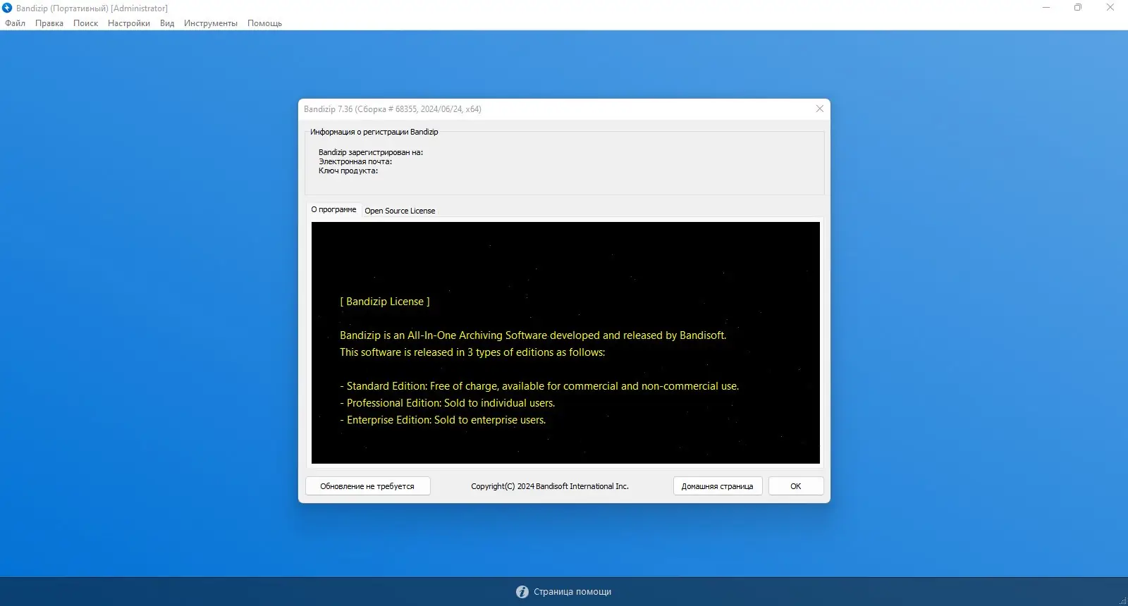 Программа доступна для установки на компьютеры под управлением Windows. Последняя стабильная версия 7.39 включает исправления безопасности и поддержку новых форматов, включая LZ4. Пользователи могут скачать бесплатно актуальную сборку с официального источника, включая как стандартную, так и портативную версию. Для расширенных возможностей предлагается платная pro-модификация, включающая дополнительные инструменты и поддержку. Ключ активации требуется только для коммерческого использования или при переходе на профессиональную редакцию.