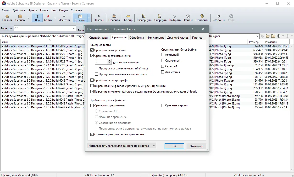 - Сравнение папок и дисков с детализацией по размеру, дате и содержимому