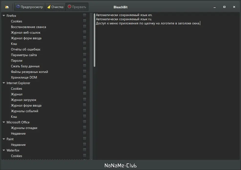 BleachBit — это бесплатная утилита для глубокой очистки операционной системы, которая помогает освободить место на диске, удалить временные файлы и защитить конфиденциальность данных. Программа эффективно удаляет кэш, логи, куки, историю браузеров и другие следы активности, а также поддерживает безвозвратное стирание файлов. Подходит как для повседневного обслуживания системы, так и для подготовки устройства к передаче другому пользователю.