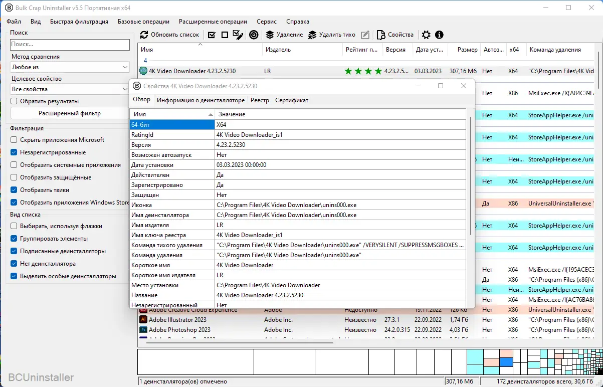 Bulk Crap Uninstaller — это эффективная утилита для полного удаления программ и их следов с компьютера. Программа анализирует установленные приложения, определяет остаточные файлы и записи в реестре, обеспечивая чистое удаление без мусора. Инструмент поддерживает пакетную деинсталляцию, фильтрацию компонентов и работу с повреждёнными установками, что делает его незаменимым в арсенале для оптимизации системы.