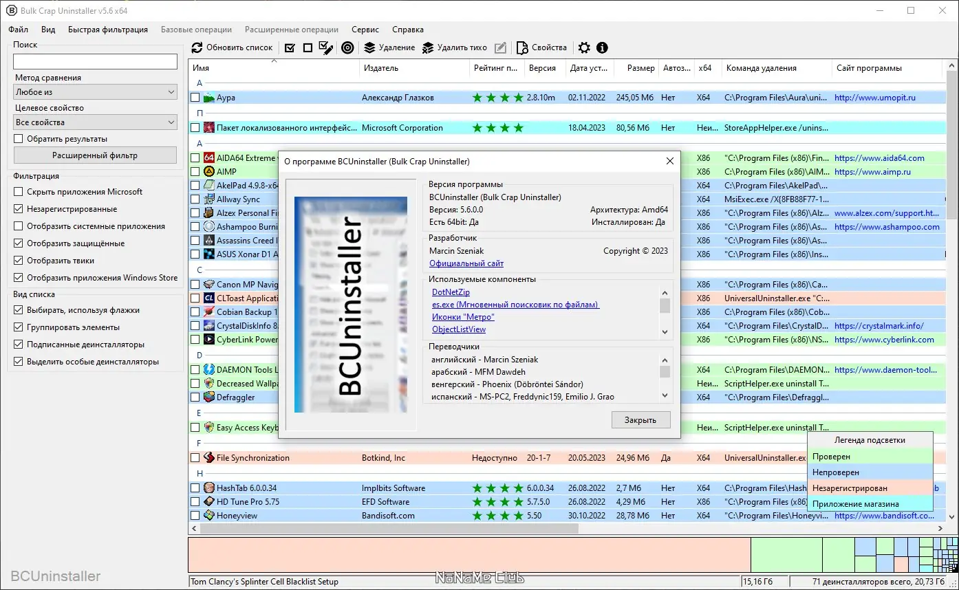 Bulk Crap Uninstaller — это мощная утилита для полного удаления программ с компьютера, которая помогает очистить систему от следов ненужного ПО, включая файлы, папки и записи реестра. Программа эффективно справляется с деинсталляцией даже тех приложений, которые не удаляются стандартными средствами. Поддержка портативного режима и интуитивный интерфейс делают её удобной как для начинающих, так и для опытных пользователей.
