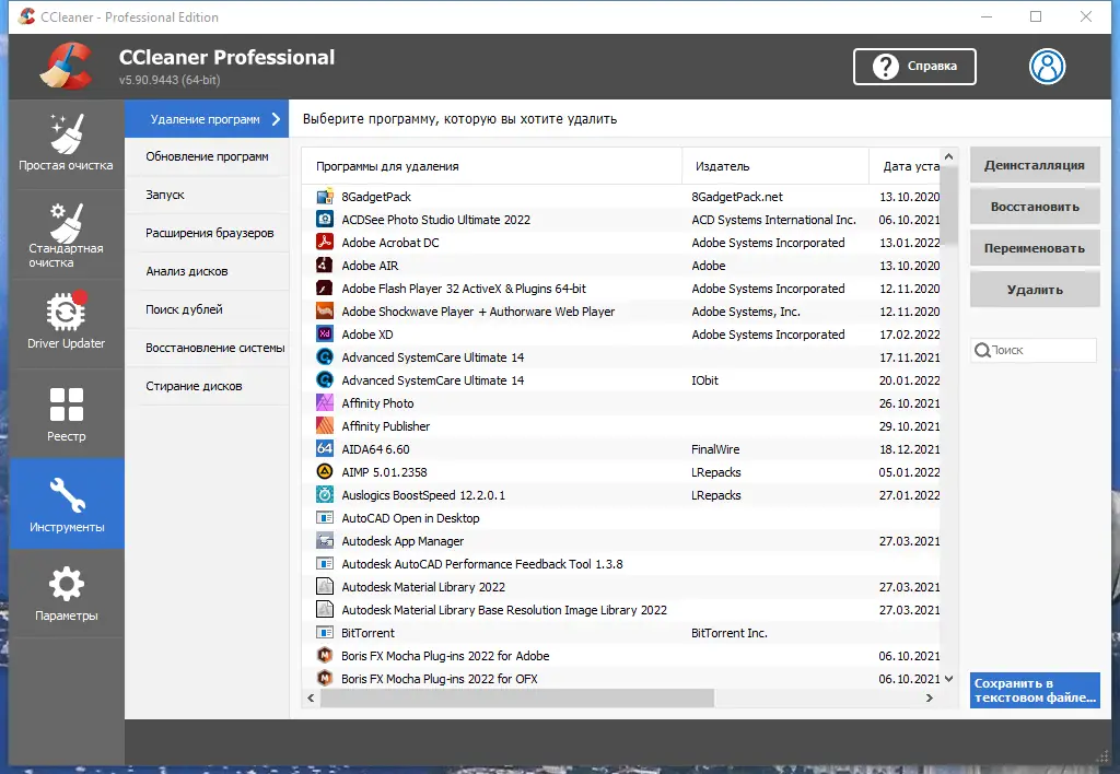 CCleaner — одна из самых известных системных утилит в категории оптимизации, предназначенная для поддержания чистоты и порядка в операционной системе. С её помощью пользователи могут быстро избавиться от накопившегося мусора, включая временные файлы, куки, историю браузеров, записи в реестре и остатки программ. Утилита поддерживает работу с множеством сторонних приложений, таких как Mozilla Firefox, Google Chrome, Microsoft Office, WinRAR, Adobe Acrobat и других, что делает её универсальным решением для обслуживания ПК.