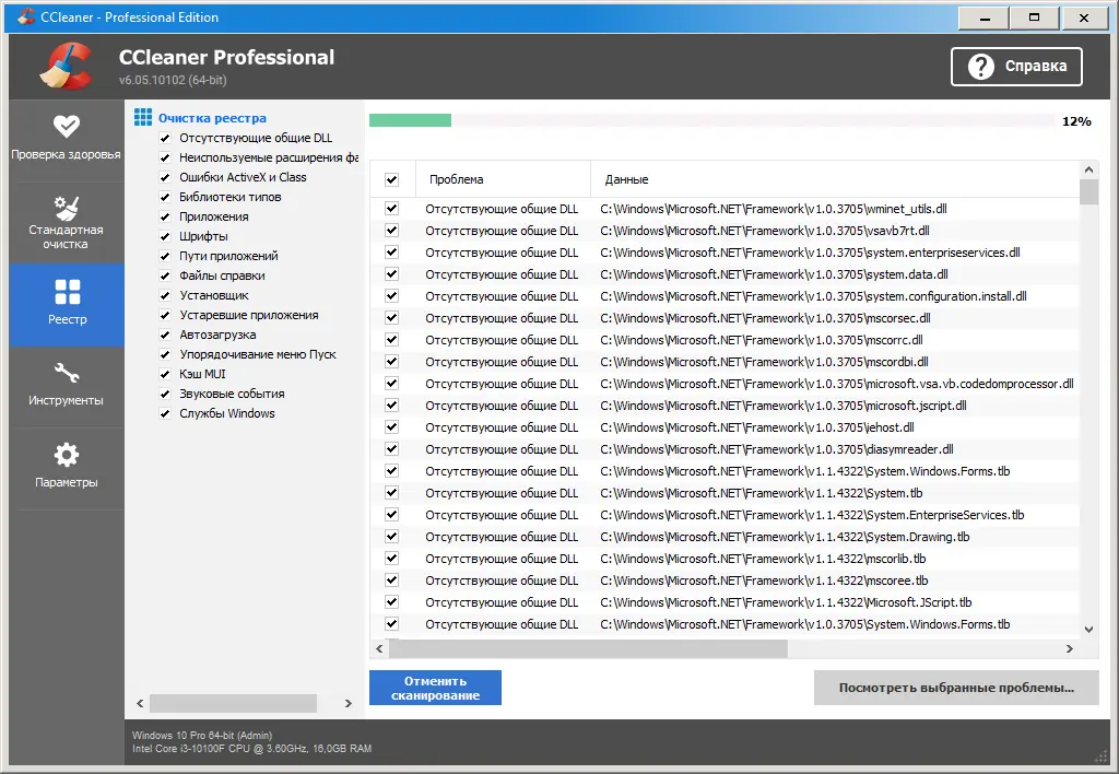 - Функция проверки и исправления ошибок в реестре Windows, включая битые ссылки и устаревшие записи.