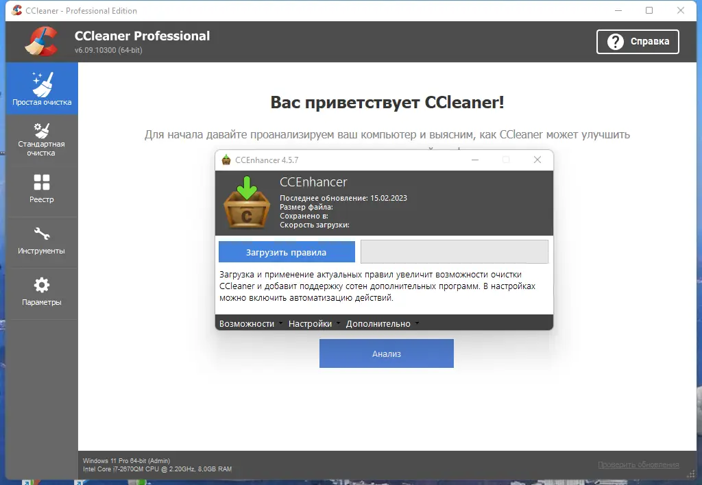 CCleaner эффективно справляется с задачей системной оптимизации, анализируя и удаляя накопленный в ходе работы мусор. Утилита сканирует жёсткий диск и реестр, выявляя временные файлы, кэш браузеров, историю посещений, данные автозаполнения и другие элементы, которые со временем замедляют работу системы. Благодаря поддержке большого количества сторонних приложений, включая офисные пакеты, архиваторы и торрент-клиенты, очистка охватывает практически все сферы пользовательской активности.