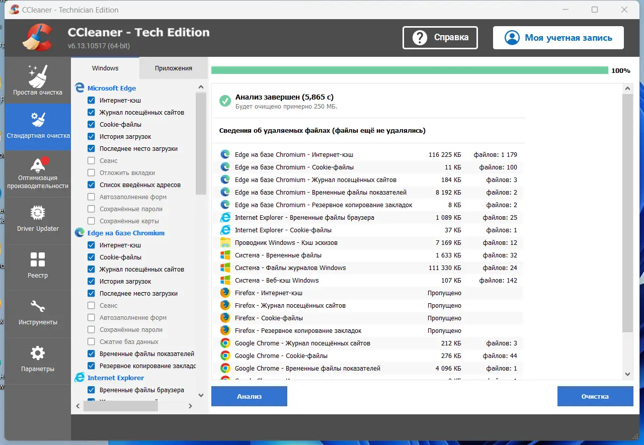 CCleaner эффективно справляется с задачами по очистке операционной системы от мусора, накапливающегося в процессе повседневной работы. Утилита сканирует жёсткий диск и системные разделы, выявляя временные файлы, кэш браузеров, логи, записи в реестре и другие элементы, которые больше не используются. Это позволяет не только освободить дисковое пространство, но и повысить общую стабильность системы за счёт устранения ошибок и устаревших записей.