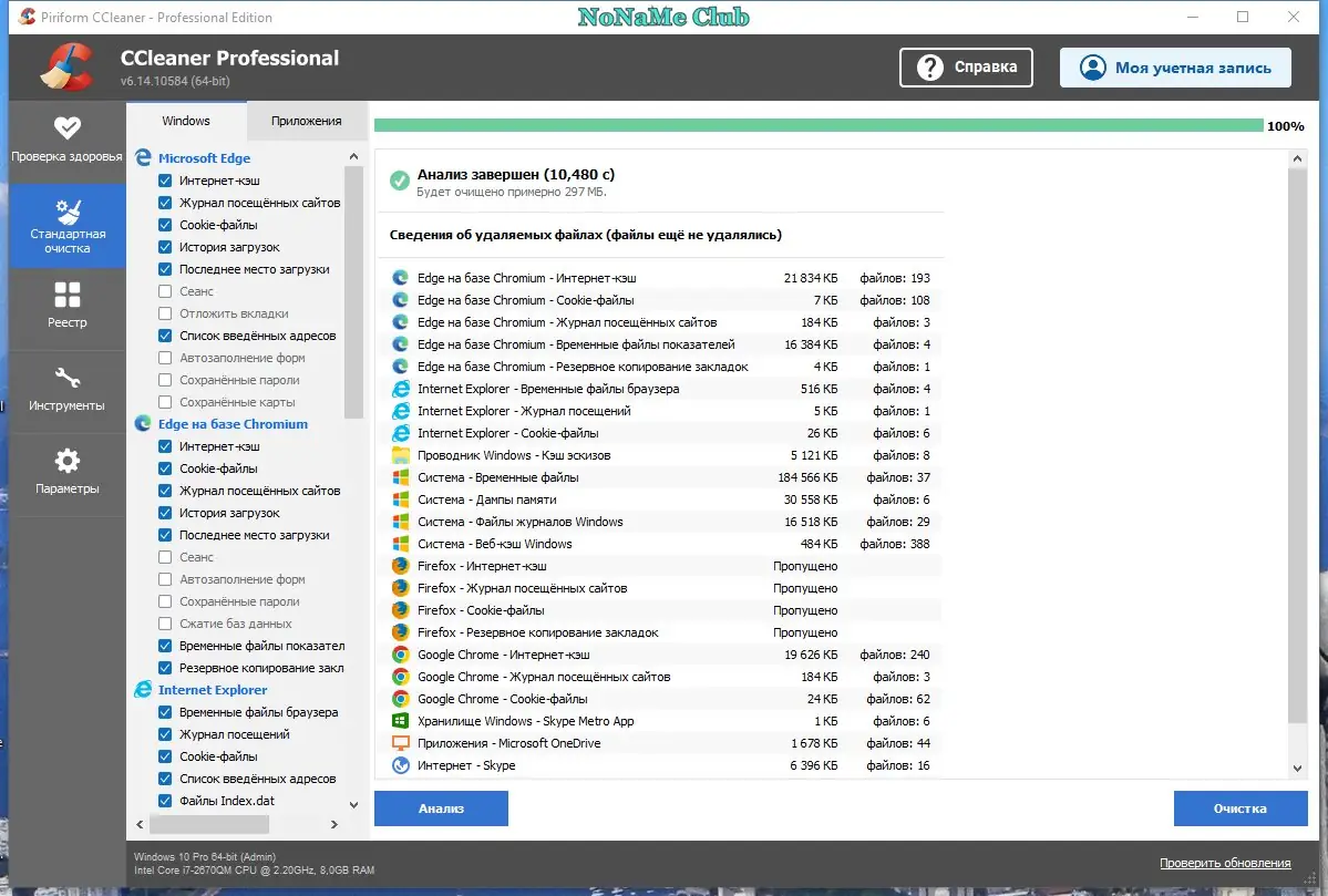 CCleaner эффективно удаляет мусор, накапливающийся в процессе повседневной работы с компьютером. Это включает временные файлы браузеров, данные кэша, историю поиска, журналы операций и остатки удалённых программ. Утилита поддерживает широкий спектр приложений, таких как Google Chrome, Mozilla Firefox, Opera, Microsoft Office, WinRAR, Adobe Acrobat и многих других, что позволяет проводить комплексную очистку системы. Особое внимание уделяется реестру Windows — анализ и исправление ошибок в нём способствуют стабильности и быстродействию ПК.