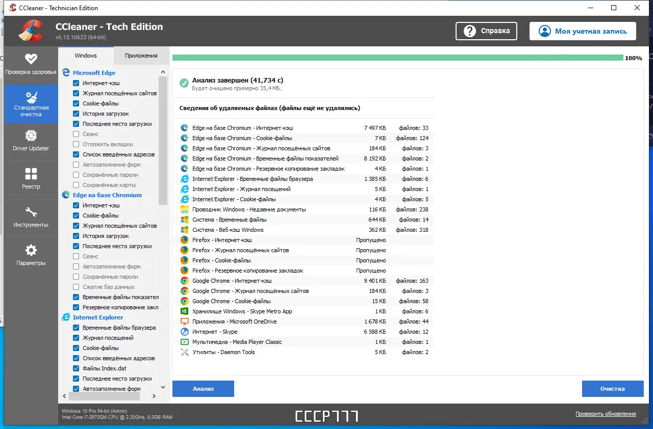 - Очистка следов веб-серфинга в браузерах, включая историю, куки, автозаполнение и кэшированные изображения.