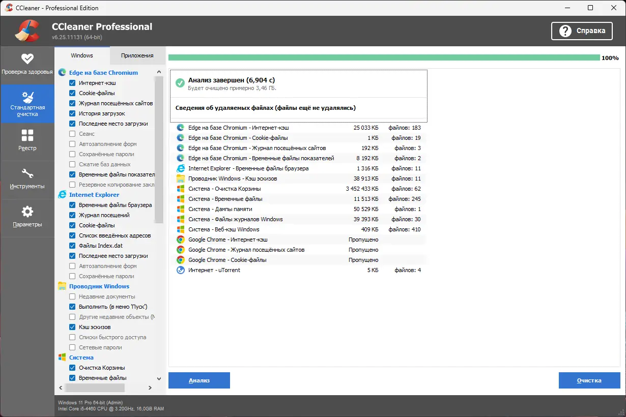 CCleaner эффективно справляется с задачами системной оптимизации, выполняя глубокую очистку дисков от ненужных данных. Программа сканирует временные файлы, кэш браузеров, историю посещений, куки, записи автозагрузки и другие элементы, накапливающиеся в процессе эксплуатации ПК. Поддержка множества сторонних приложений, включая популярные браузеры, мультимедийные проигрыватели и архиваторы, позволяет удалять мусор из различных программ, что значительно увеличивает эффективность очистки.