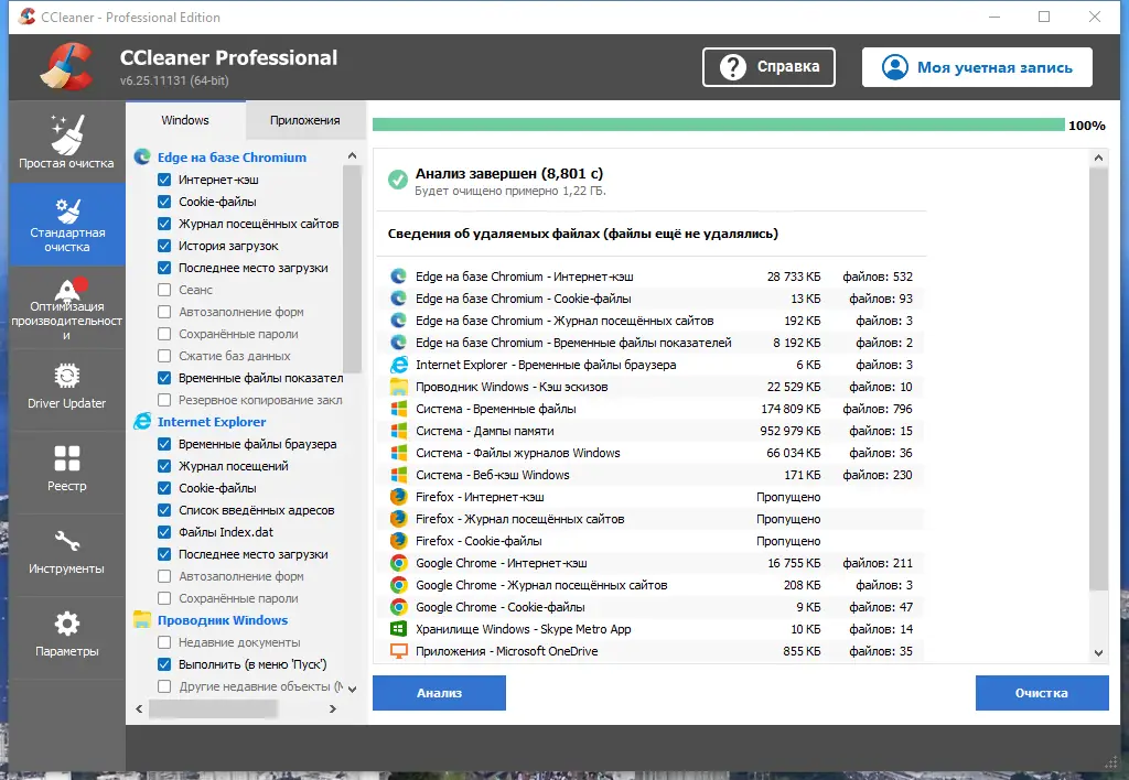 - Очистка следов веб-серфинга в различных браузерах, включая Chrome, Firefox и Edge