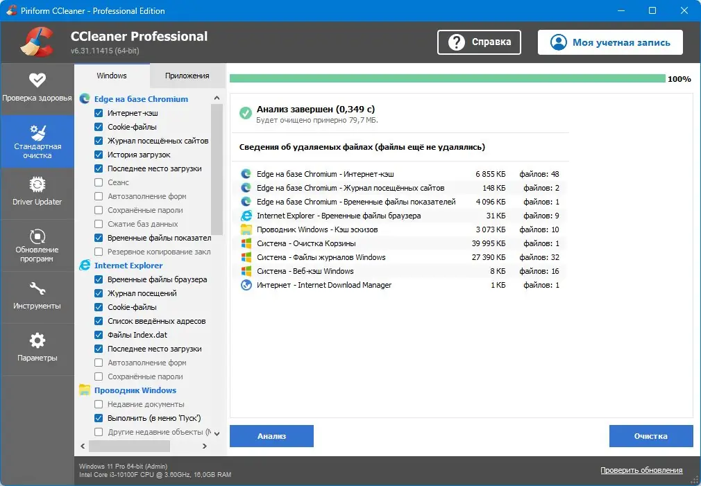 CCleaner — это инструмент для очистки операционной системы от временных файлов, следов интернет-активности и ненужных записей в реестре. Программа эффективно освобождает место на диске, ускоряет работу системы и повышает её стабильность. Поддержка множества приложений и простота использования делают её популярной среди пользователей Windows.