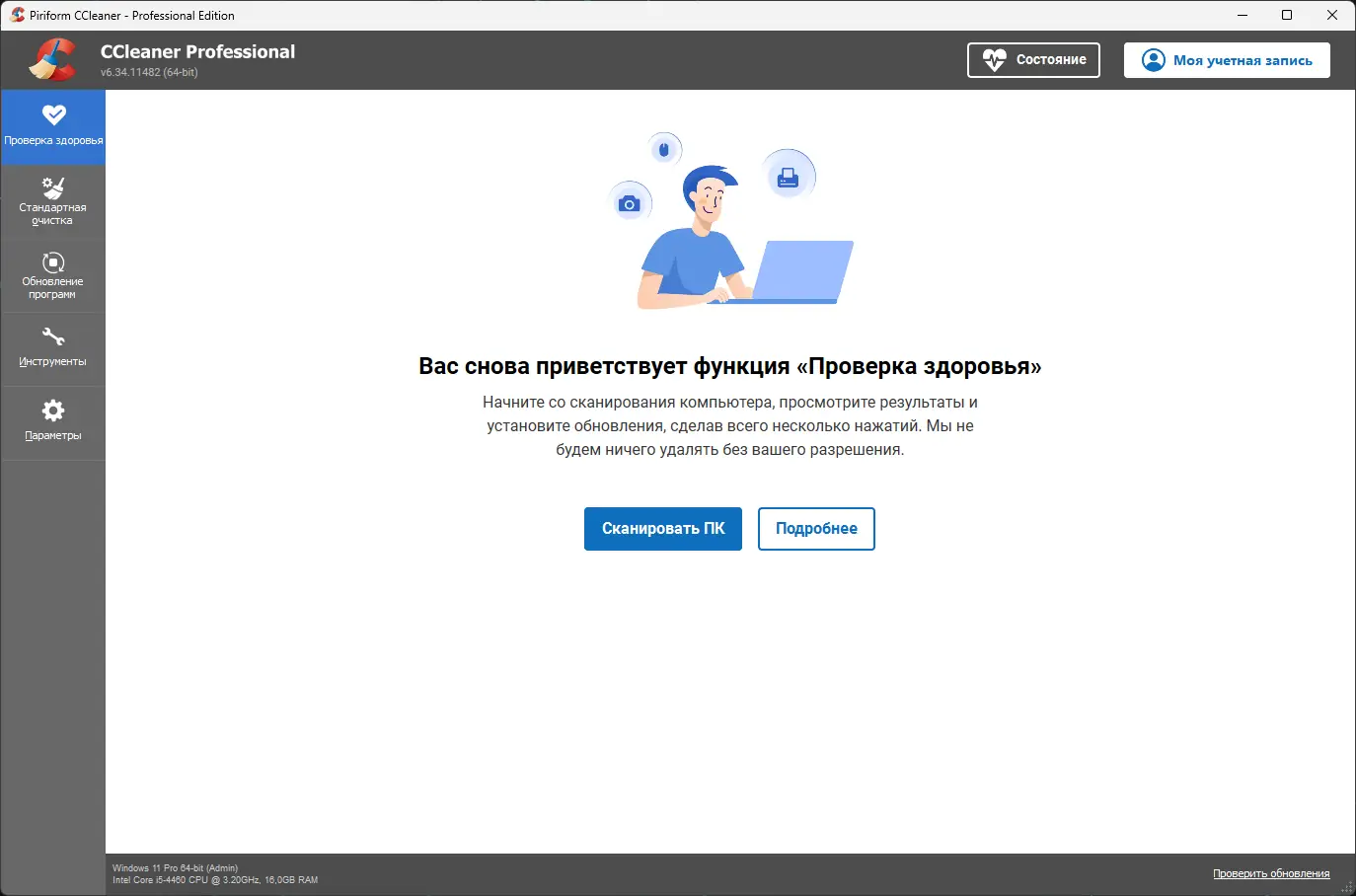 - Интуитивно понятный интерфейс и быстрое сканирование системы
