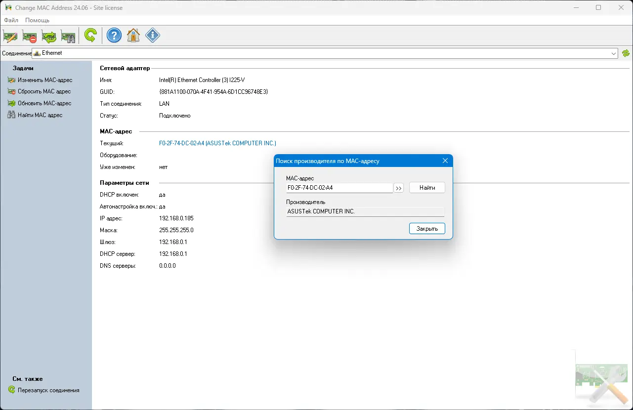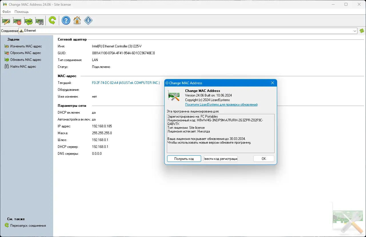 Change MAC Address предназначена для настройки сетевого интерфейса на уровне аппаратного адреса, что может быть полезно при обходе фильтрации по MAC-адресам или при тестировании сетевой инфраструктуры. Утилита предоставляет доступ к текущему MAC-адресу локального устройства и позволяет его заменить одним кликом. Поддержка различных методов сканирования, таких как ARP, NetBIOS, WMI и SNMP, делает инструмент универсальным для диагностики сети.