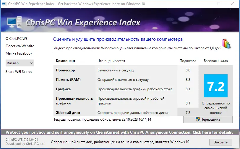 Как пользоваться ChrisPC Win Experience Index
