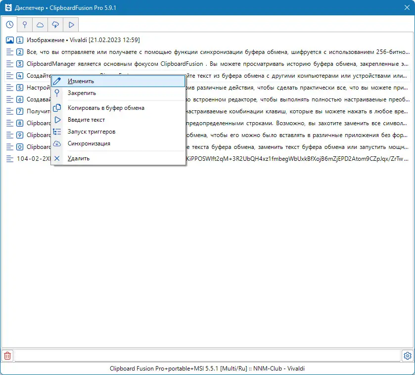 Clipboard Fusion — это мощная утилита для управления буфером обмена, которая расширяет стандартные возможности копирования и вставки. Программа сохраняет всю историю буферов, включая текст, ссылки и фрагменты с форматированием, и позволяет быстро находить нужные данные. Она автоматически очищает скопированный текст от лишнего форматирования, упрощает редактирование за счёт замены символов и поддерживает макросы для автоматизации задач.