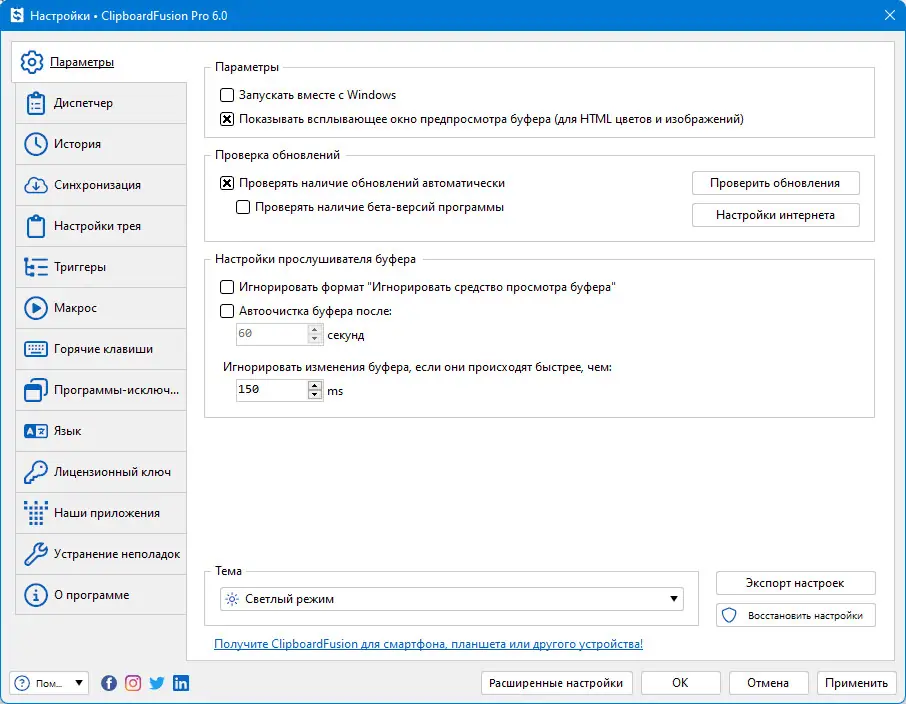 Clipboard Fusion — это мощная утилита для расширения функциональности буфера обмена в операционной системе Windows. Программа сохраняет всё, что вы копируете, включая текст, ссылки, фразы и другие фрагменты, обеспечивая быстрый доступ к ним в любое время. Она автоматически очищает скопированный контент от форматирования и позволяет настраивать вставку с помощью макросов и горячих клавиш.