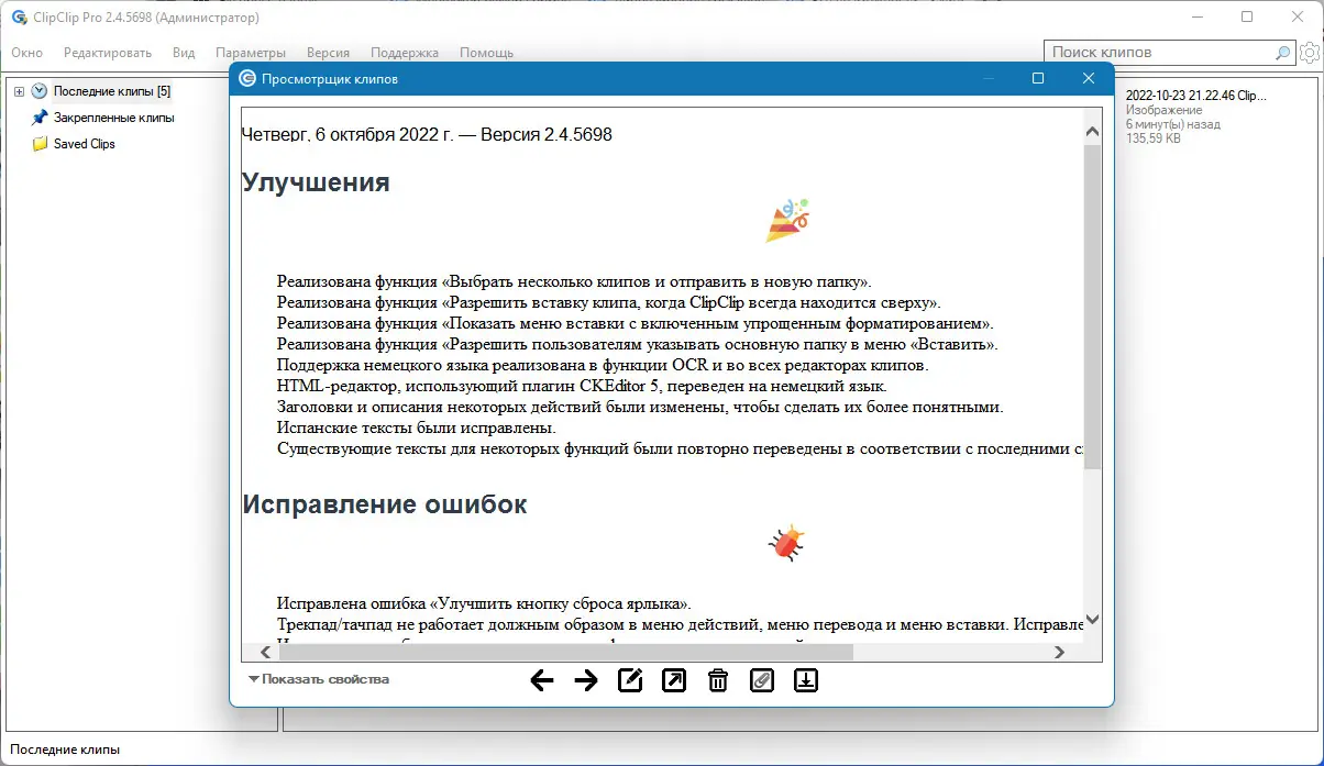 ClipClip предлагает широкий функционал, который выходит за рамки обычного менеджера буфера. Программа интегрируется в систему незаметно, не замедляя работу компьютера, и при этом предоставляет множество инструментов для повышения производительности. Поддержка мультимедийного контента, продвинутые функции поиска и редактирования, а также возможность синхронизации делают её особенно ценной для офисных работников, программистов и копирайтеров. При этом интерфейс остаётся интуитивно понятным, а настройки позволяют адаптировать приложение под индивидуальные предпочтения.