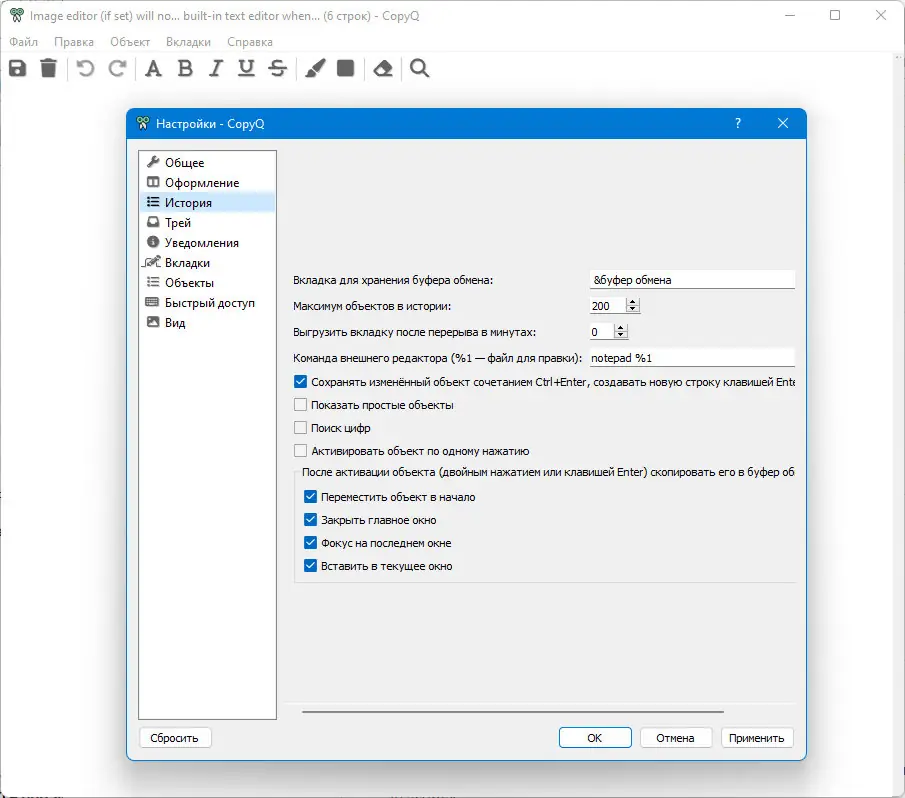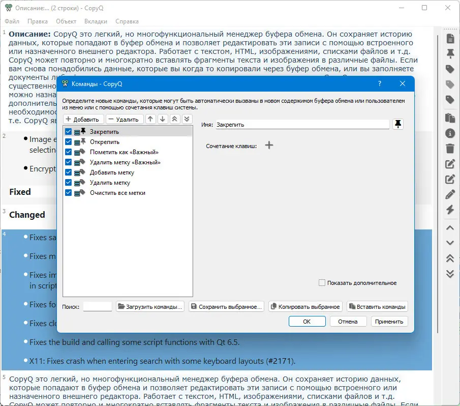 CopyQ — это многофункциональный менеджер буфера обмена с поддержкой текста, изображений, HTML и других форматов, позволяющий сохранять историю копирования, редактировать элементы и быстро вставлять их при необходимости. Программа работает на различных платформах, включая windows и linux, и подходит как для повседневного использования, так и для автоматизации рутинных задач. Благодаря гибкой настройке и поддержке скриптов, она становится незаменимым инструментом для пользователей, ценящих эффективность и контроль над данными.