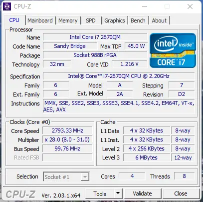 - Отображает полные характеристики CPU: маркировку, ревизию ядра, сокет и кэш-память L1, L2, L3