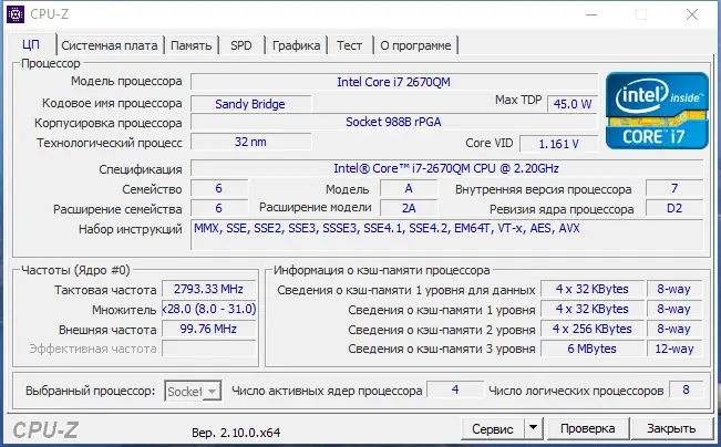 - Определяет точное наименование процессора и его архитектуру, включая данные о ядре и степпинге