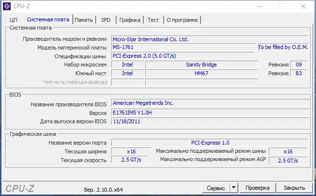 - Содержит вкладку с информацией о материнской плате: модель, чипсет, версия BIOS