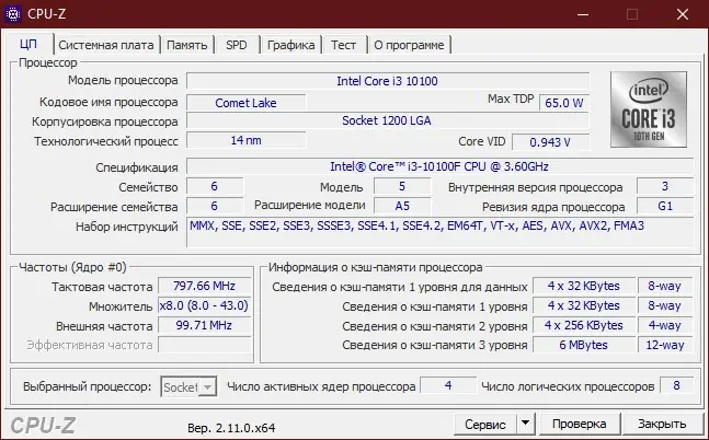 Описание CPU-Z
