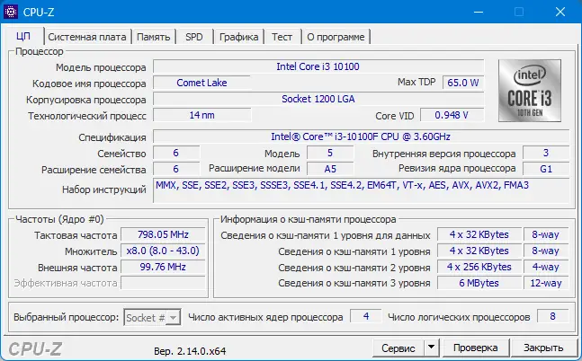 Описание CPU-Z