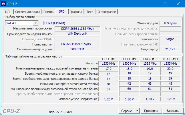 Интерфейс CPU-Z интуитивно понятен и разделён на несколько вкладок: CPU, Caches, Mainboard, Memory, SPD, Graphics и Bench. На вкладке CPU отображаются основные параметры процессора — его модель, ядро, техпроцесс, количество ядер и потоков. В разделе Memory показан тип, объём и текущая частота оперативной памяти, а вкладка SPD позволяет увидеть данные с каждого модуля RAM, включая производителя, серийный номер и тайминги. Вкладка Graphics предоставляет сведения о видеокарте, включая объём видеопамяти и текущую частоту GPU, что полезно для мониторинга производительности.